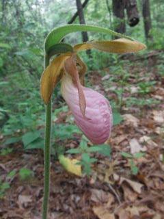 We were very lucky to catch the tail end of a cluster of Pink Lady’s Slippers from the Orchis Family. Chip reminded me how these are highly evolved flowers particularly designed for pollination by creating a one-way passage for insects interested in feeding on their nectar.