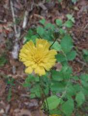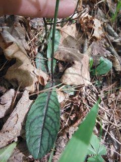A fun discovery was the flower of the Rattlesnake Weed, another member of the Composite Family, part of the Hawkweed group, and very dandelion-like in its blossom. This was a fun discovery because we had been seeing its distinctive basal leaves with their vivid green and purple veins all spring and were having a hard time distinguishing this plant from similarly leaved ones in the Rattlesnake Plantain group.