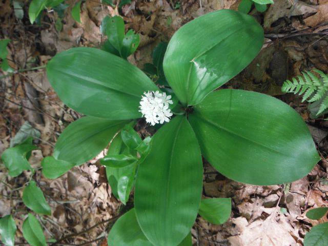 Our second member of the Lily Family was the White Clintonia. This flower is very much like a cultivated garden flower with it’s dark green, simple basal leaves. Newcomb’s indicated that this Clintonia appears in rich woods over a certain swath of the east coast, leading us to feel that we were seeing something not as common as the first two flowers.