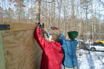 Malcolm and Carl rebuilding a sign