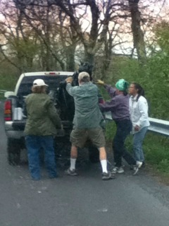 But Headwaters is making a name for itself in the Augusta/Rockingham area and the call indeed did come for help – and so, we responded – gladly! We came from Harrisonburg, Weyers Cave, New Hope, Bridgewater, Mt. Sidney and Mt. Crawford. Headwaters had spread the word to other stakeholder groups – like the Shenandoah Valley Bicycle Coalition and the Friends of Shenandoah Mountain who also responded. We came with two trucks and willing hands and sure feet.
