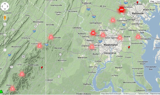 From Vanessa Beauchamp’s portion of the WLBG webinar: areas of Maryland and Virginia where WLBG has been identified. In VA, these areas interestingly follow the Appalachian Trail.