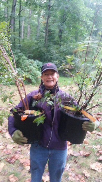 Kathy Byers.700 Published October 3, 2015 at 393 × 700 in JMU Arboretum Stream Project Update ← Previous Next → Kathy Byers ready to plant.