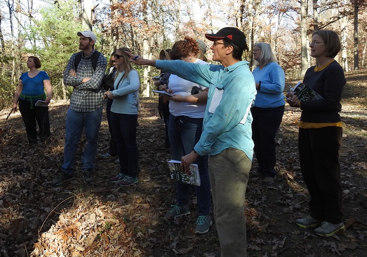 treeid-pp-2-crop Published November 29, 2016 at 720 × 506 in Tree ID Trip ← Previous Next → Sue Gier, Cohort V, pointing out something of interest.