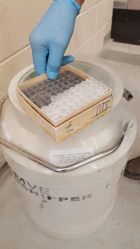 condor15 Published January 30, 2018 at 450 × 800 in HMN Assists With California Condor Specimens Processing for Smithsonian Museum ← Previous The box containing tissue samples is carefully lowered into the tank containing liquid nitrogen