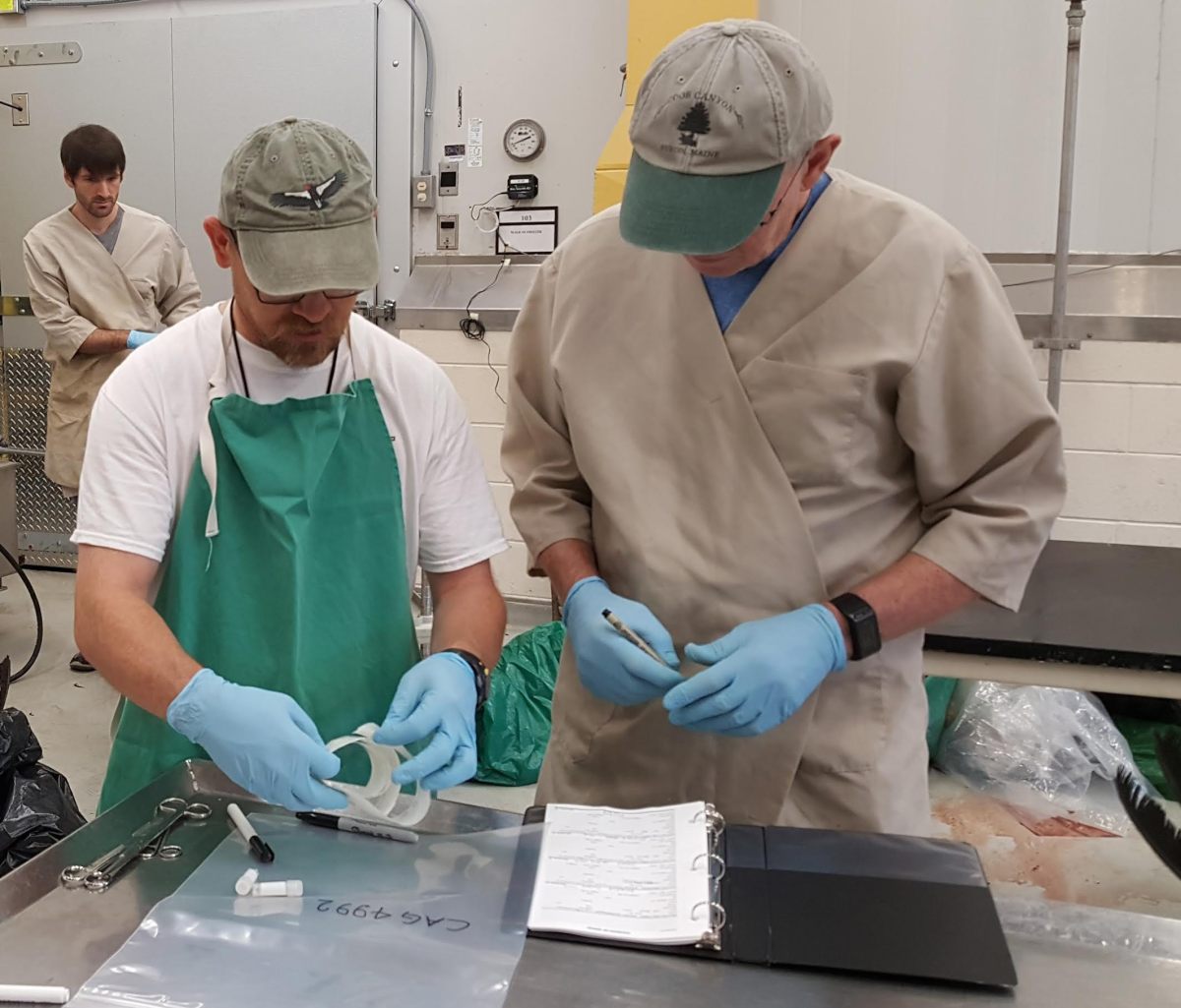 condor5 Published January 30, 2018 at 2130 × 1821 in HMN Assists With California Condor Specimens Processing for Smithsonian Museum ← Previous Next → Brian Schmidt, a museum specialist in the Division of Birds at NMNH gives Byron some OJT (on the job training)