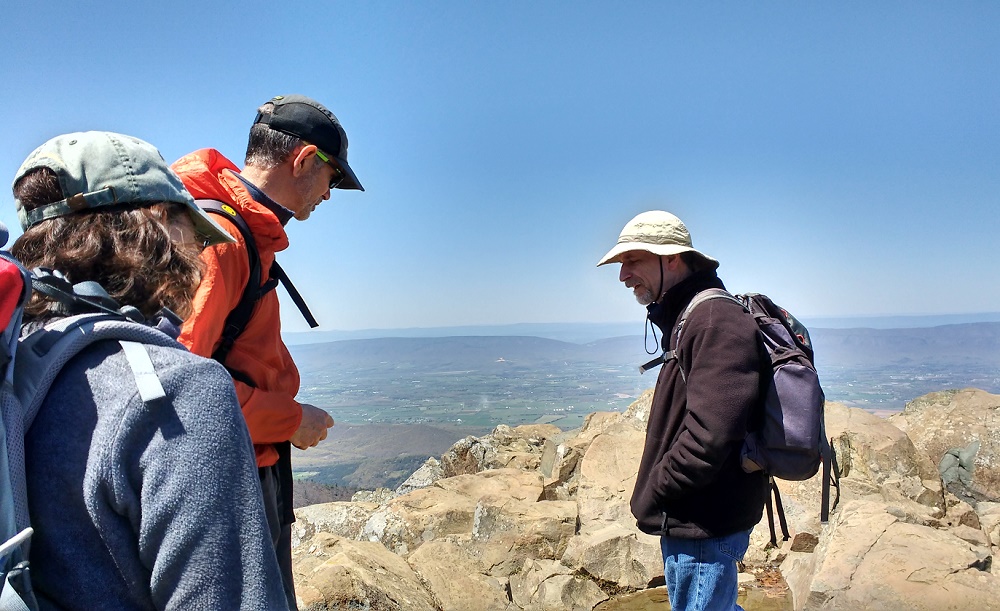 SNP.4.30.18.13 Published May 1, 2018 at 1000 × 611 in Stony Man Environs at Shenandoah National Park ← Previous Next → Kate, John and Dave check out the view.