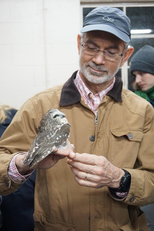 SawwhetOwls6.bb Published November 12, 2018 at 500 × 750 in Northern Saw-whet Owl Banding at Highland Retreat ← Previous Next → After processing this owl is ready for release. HMN John Bauman is holding the owl.