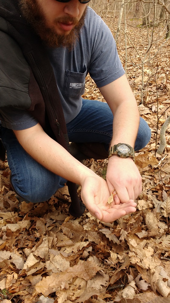 mapleflats.5 Published March 17, 2019 at 562 × 1000 in Spring Outing at Maple Flats Ponds ← Previous Next → Allen and Shelley’s son Stuart with a Spring Peeper nicely camouflaged as a dried leaf.