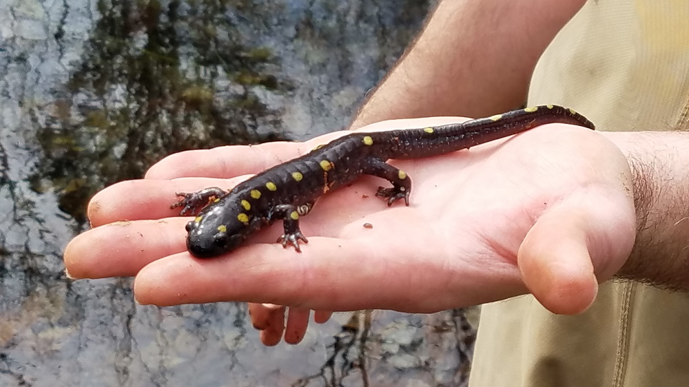 Spotted Salamander Published March 17, 2019 at 1000 × 562 in Spring Outing at Maple Flats Ponds ← Previous Next → Spotted Salamander. Photo credit: Cheryl Shull