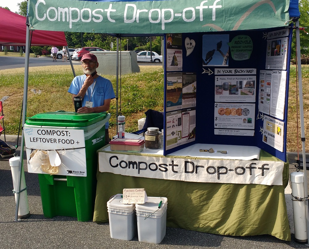 The photo at top, above, shows Art at the Compost Drop-off table at the Harrisonburg Farmers Market on Saturday, May 22. Photo by Adrie.