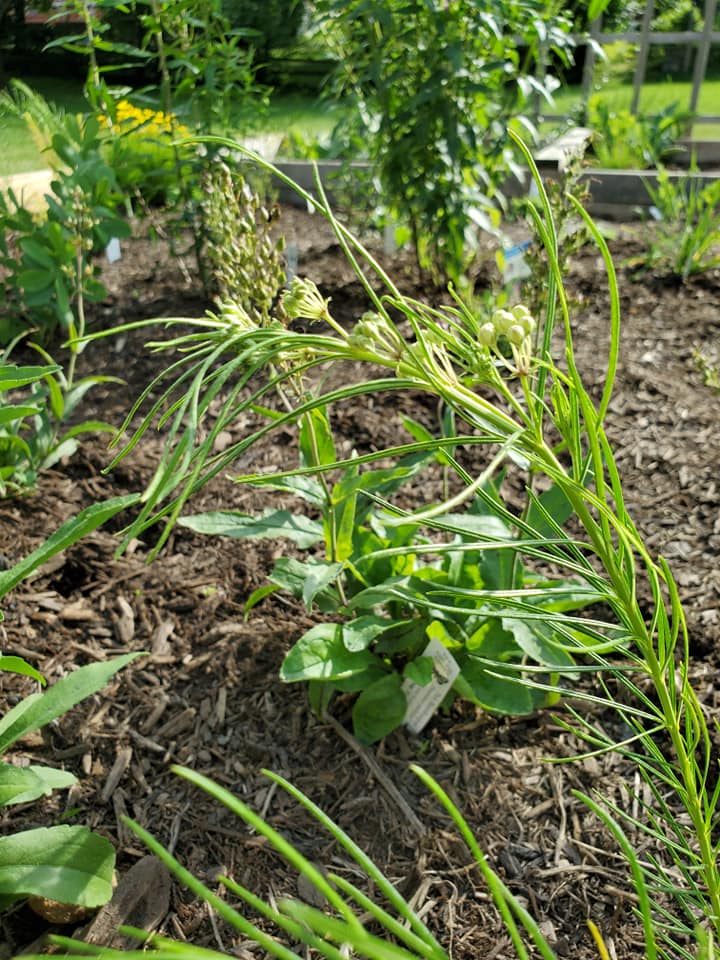 Photos by Stephanie. The purple flower in bloom is wild bergamot/ bee balm, and the yellow flower is tickseed coreopsis. Those two plants were a special donation to the garden and were the only two plants used that were not purchased or donated by The Natural Garden. The photo on the right, below, is of whorled milkweed. Click on any of the photos below to enlarge it and start a “slide show.”