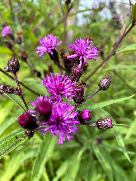 Steve led us on side wanderings to find cardinal flowers just past prime bloom, swamp rose mallows in full bloom, queen-of-the-prairie non-longer blooming, and a host of other plants. We learned how to identify native viburnums and persimmon trees, round rushes and sedges with edges, and about the lesser known but tremendous invasive threat of brown canary grass that has become well established at this preserve, outcompeting native cat tails. With a little luck, we may be invited back in June to experience the queen-of-the-prairie in its showy, full bloom.