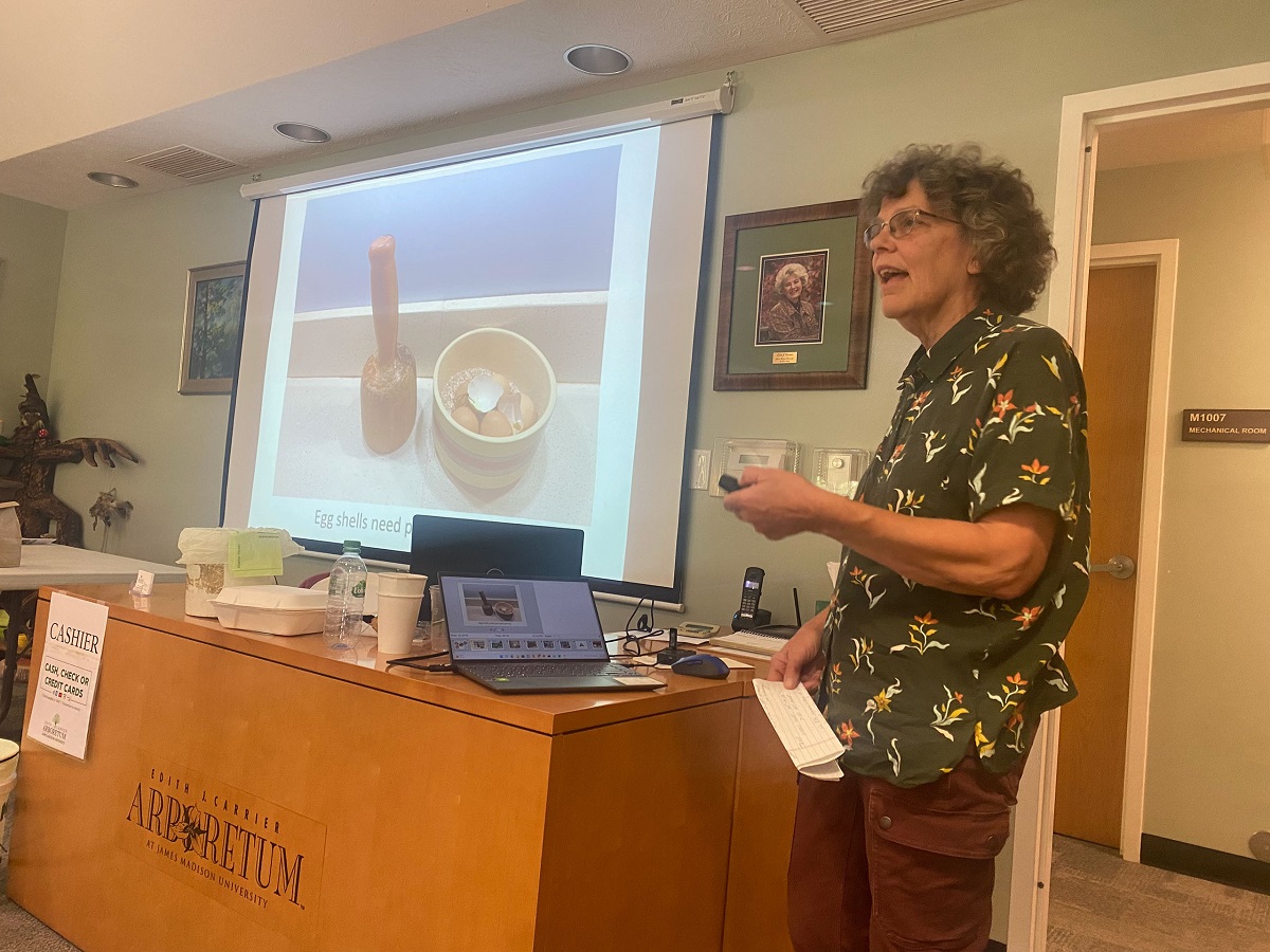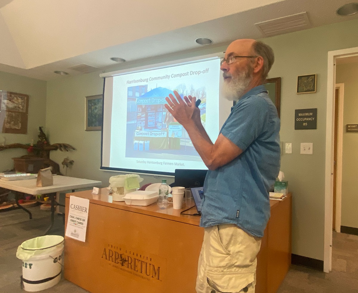 The second talk, on June 29, was entitled “Composting YOUR Way,” presented by HMNs Art Fovargue, Chris Bowlen, and Dave Forrer. Beginning with an explanation of the biology of composting, they went on to discuss some strategies for making your backyard compost pile more efficient. Most important is getting the right mix of nitrogen (“greens”), carbon (“browns”), oxygen, and water. As alternatives to backyard composting, they mentioned worm composting, which can be done indoors, and taking your organic waste to the Harrisonburg Compost Dropoff, from which it goes to Black Bear Composting, a commercial-scale composting operation in Crimora. Besides producing compost for your garden, all these methods help to keep organic waste out of landfills, thus reducing the production of methane, among the most powerful of greenhouse gases.