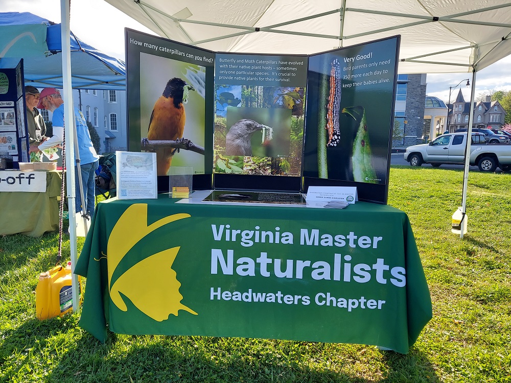 … Riverfest … was a very well attended event and a beautiful day. Sandy’s beautiful display attracted many people who had a wide variety of experience with nature. So many people had stories to tell and pictures to share. It was great to introduce folks to iNaturalist app and Homegrown National Park. I was so impressed with the school children – some from as far as Hampton – and their understanding of the importance of pollinators. I think enough people took info about being a Master Naturalist to fill another program. Having current students talk about the program was impactful. Everyone (including us) learned new things. I was also pleased with the interest in bluebirds – a future CE program! It was great to be next to the Native Plant table, a symbiotic relationship and huge draw.