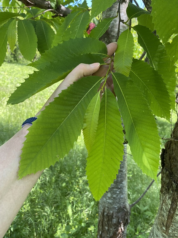 ACF employs various methods to crossbreed the chestnut species, primarily by covering the female flowers on American Chestnut trees with paper bags once they bloom in June and hand application of pollen from the Chinese or Japanese species. Less than 10% of the catkins have female flowers. These methods have resulted in hybrid species that are 15/16 or more of the American genotype. The chestnut trees start producing nuts at age 7 years.
