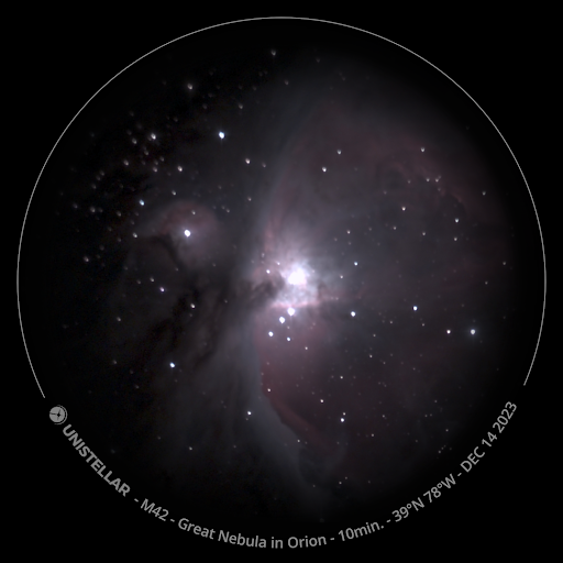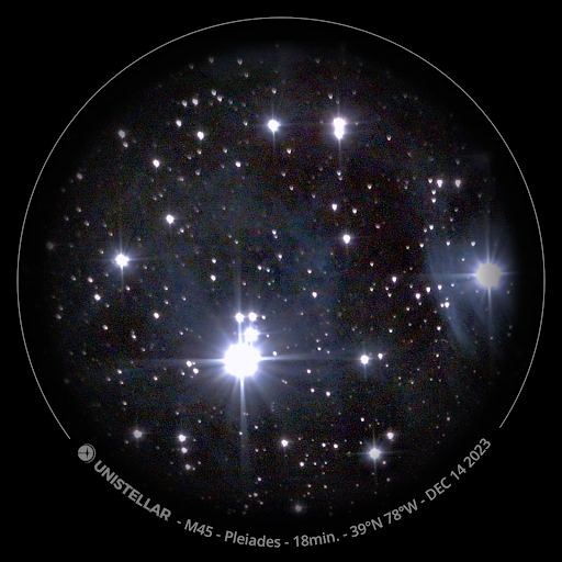 Photos by Zack. On the right is an image of the Great Nebula in Orion and on the left is an image of the Pleiades. “The haziness around the Pleiades isn’t an artifact, but is the dust cloud out of which the young (only 100 million year-old) stars formed.” – Zack