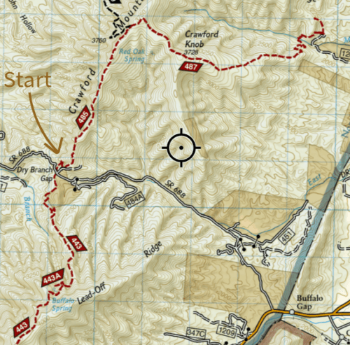 PATC member, Jim Fye, is the trail maintainer for Crawford Knob (#487, see map below), a lovely 2.5-mile trail north of Buffalo Gap. He, and many others, have spent countless hours making this tucked-away trail more accessible and enjoyable. On this recent work trip, we saw lots (and lots) of bear scat, several native flowers (e.g., tall bellflower, southern harebell, wild columbine, nodding onion, Joe-pye-weed), an American toad, and a dogbane leaf beetle.