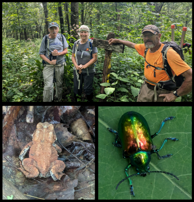 Photos by Judy Barlett. Top from left to right, Michael Seth, Jean Stephens, and Jim Fye. Bottom left: American toad. Bottom right: Dogbane leaf beetle.