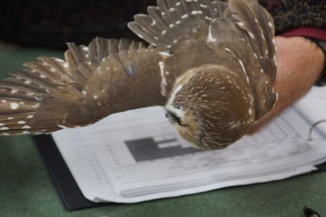 Steven Johnson photograph of North River Gorge team at Wildflower Walks 2014Byron Huckee photograph of a Northern Saw-whet Owl at the banding station Nov 2014Adriana Banu photograph of Spotted ginger at the Wildflower Walks 2014Byron Hukee photograph from the Northern Saw-whet owl banding station November 2014
