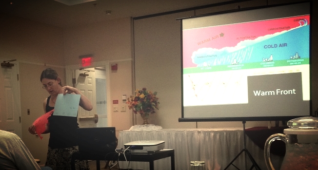 Photograph of Kate Guenther teaching a session in Bridgewater on weather reading 25 Sept 2014