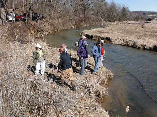 Chip Brown photograph of a HMN trip to revisit the Mossy Creek stream restoration site, February 2014