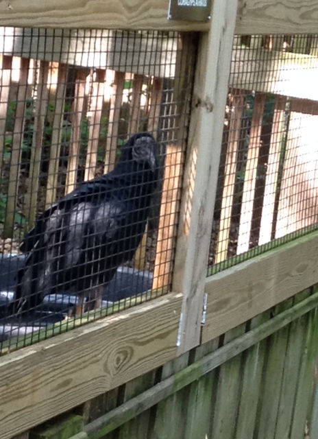 Photograph of Buttercup the Black Vulture at the 16 August 2014 ribbon cutting of the 2013-2014 HMN Focus Project, a new certified Wildlife Habitat at the Wildlife Center of Virginia in Waynesboro, Virginia