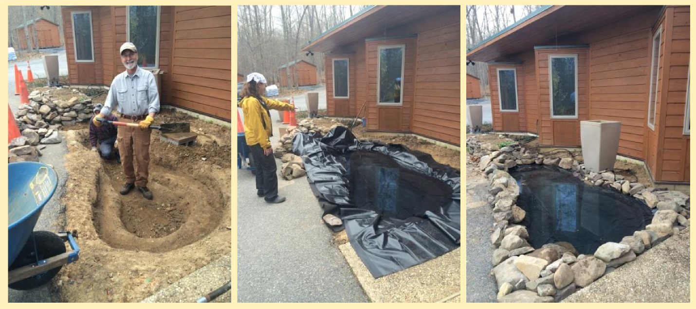 Series of photographs showing construction of the pond for the 2013-2014 HMN Focus Project, a new certified Wildlife Habitat at the Wildlife Center of Virginia in Waynesboro, Virginia
