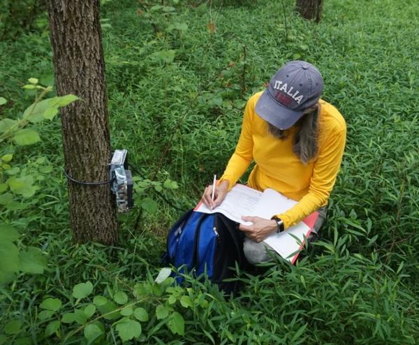 Carl Droms photograph of Peggy Plass at her VWL bees survey site 2017Sandy Greene at Elk Run Trails 2017Byron Hukee working on California condor project 2017Peggy Plass photograph of book sale at HMN Annual Meeting 2017Friends of Shenandoah Mountain photo of Malcolm Cameron hike High Knob Fire Tower 2 Dec 2017 Adrie Voors photograph of group on the Lichen Hike 5 Nov 2017Collage of Leslie Sturgis of Save Lucy presenting on bats 18 Nov 2017Elaine Smith photograph of participants at Nature Journaling with Betty Gatewood CE 27 Oct 2017Elaine Smith photograph of Sandy Greene and Rachael Baczynski at Elkton Autumn Days Oct 2017Carl Droms photograph of Guy deBrun’s Leave No Trace CE event 24 Sept 2017Photograph of Kate, Chip and Carl at the Leave No Trace CE event 24 Sept 2017 Stephanie Gardner photograph of Seth Thompson’s bear teaching materials at VMN Annual Conf 2017Stephanie Gardner photograph of a bee hotel for the Mason Bee Project spring 2017Peggy Plass photograph of a bee hotel for the Mason Bee Project spring 2017White-tailed deer fawn caught on camera by Peggy Plass and Carl Droms for eMammal 28 June 2017Carl Droms photograph of Peggy Plass recording data for the eMammal project summer 2017 Collage of photographs from the Quarry Gardens at Schuyler tour 22 July 2017 Peggy Plass photograph of Chris and Kathy and VDCR botanist Gary Fleming, RareQuest 15 June 2017
