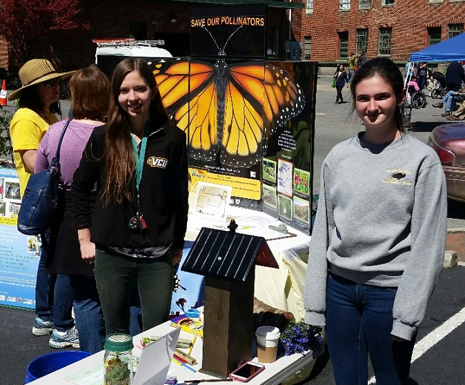 StauntonEarthDay2016SG.crop Published May 4, 2016 at 674 × 558 Governor’s School student helpers Brenna and Taylor working the bee house table, Earth Day Staunton, April 16, 2016
